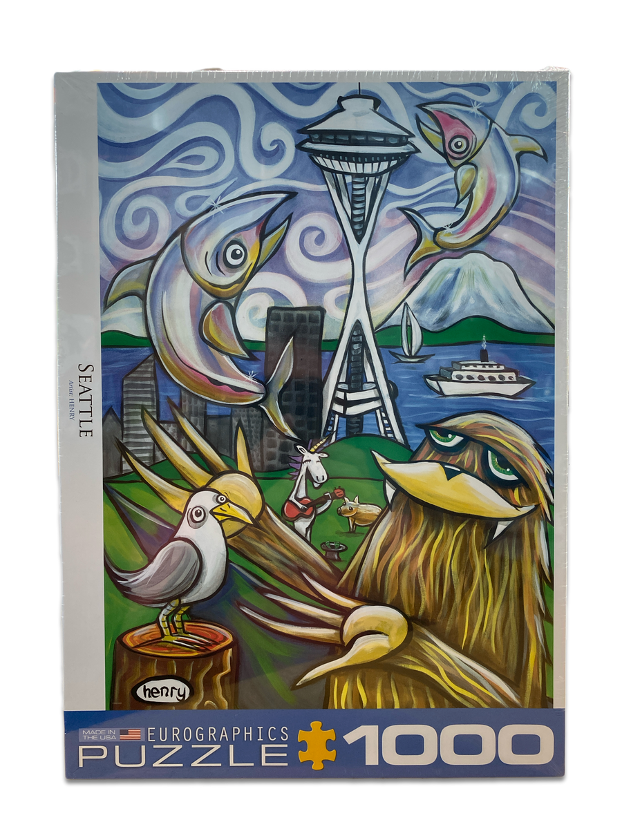 Known as “Seattle’s Most Prolific Artist”, Henry has sold more than 2000 canvases and has painted more than 300 murals across the world. You’ll always notice Henry’s work whether it’s on the street or in an art gallery. He commonly paints primitive images with a dream-like, surreal quality. He wants the natural rawness of the painting process to show through his balanced, bright, and whimsical work.